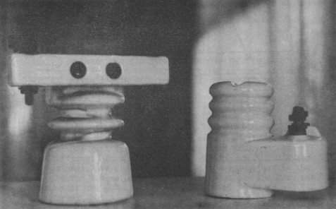 with cement, but George tells me the insulator wriggled right off the metal pin.