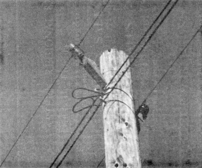 insulators on each crossarm. The wires are all down! George somehow managed to