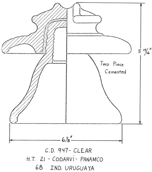 insulators are all clear, and were manufactured by a Uruguayan glass factory