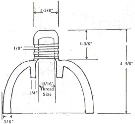 best thread measurement I could get was 15/16". The knob on the top is 1-5/8" high and 1-3/8" thick. It has 3 grooves that are