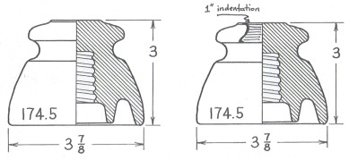 styles of Pyrex insulators: CD 139.6 and the three piece stacker, CD