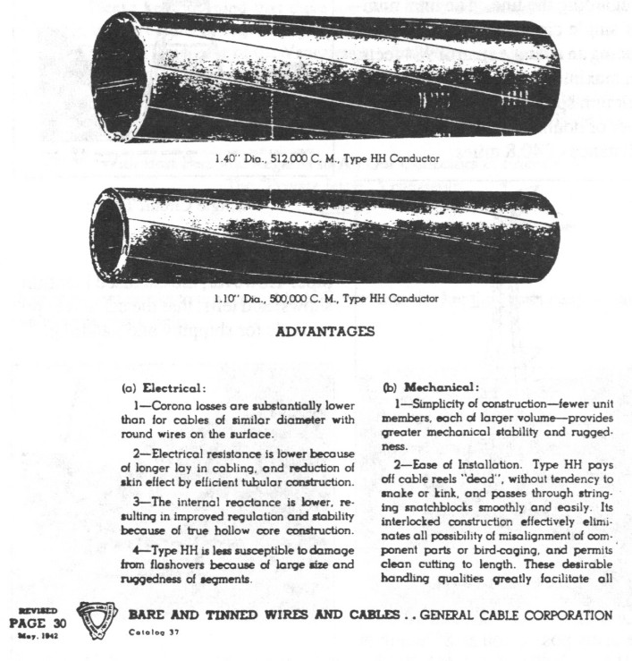 replacement cable called "ASCR" -- aluminum cable steel reinforced.