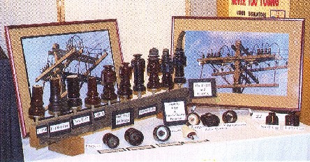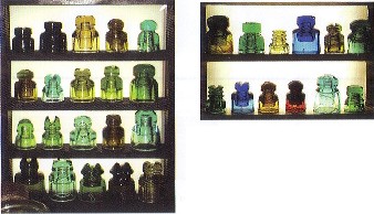Silica Sand, producing a display of 115 different glass threadless insulators,