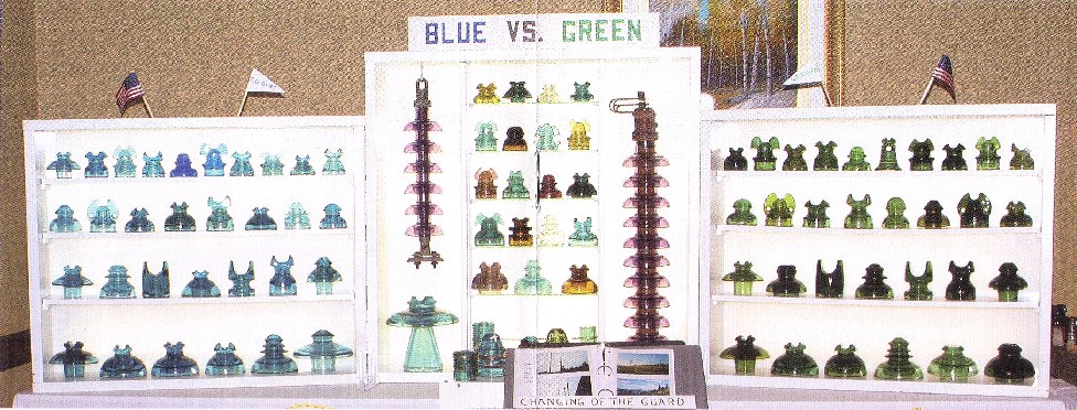 center panel featured two unique insulators, the CD 244.5 and CD 139.8 (above). Competing for color honors were the Blues vs. Greens. Amid a beautiful