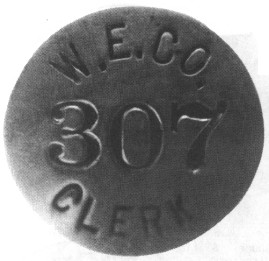 (#136), a clerk (#112), a foreman (#155) and a 1910 unmarked lineman badge
