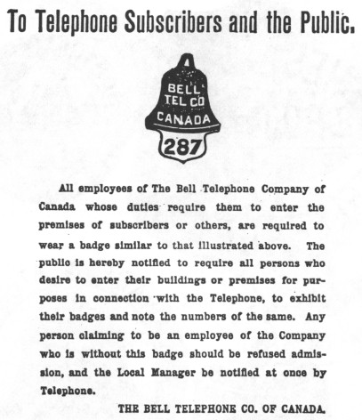 and Telegraph Company. The number of the badge appears at the bottom." The
