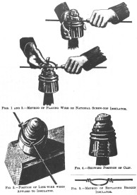 with the ends of the hooks turned upwards, as shown In Fig. 3, then drop the clip and line wire over the top of the insulator as shown In the