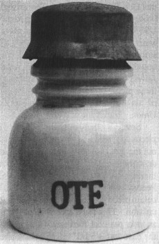 somewhat limited space. An earlier barrel shaped insulator of earthen ware