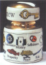 paperweights with electrical insulators in 16 designs. The display contains six
