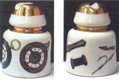 of the known designs. Fornasetti used porcelain insulators (U-1668 and U-1714)