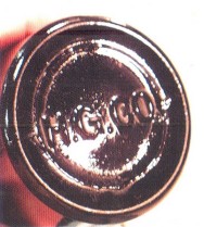 | The almost black dark amber beer bottle is marked HGCO on the bottom. These