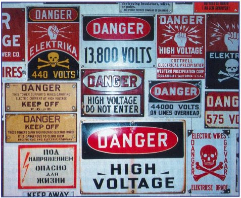 go-withs: porcelain signs warning people to stay away from power lines. Among