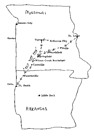Springfield, Missouri to Ft. Smith, Arkansas, but if and where it went from Springfield through Marshfield, and Rolla to St. Louis is just conjecture. In my opinion there would be a good chance it did, since undoubtedly, St. Louis would have been an important city during the Civil War.