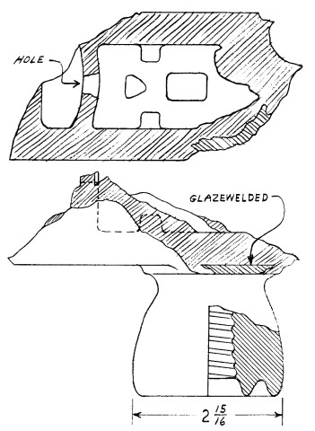 know is that the boxy arrangement (with an end hole) on top is glazewelded to a
