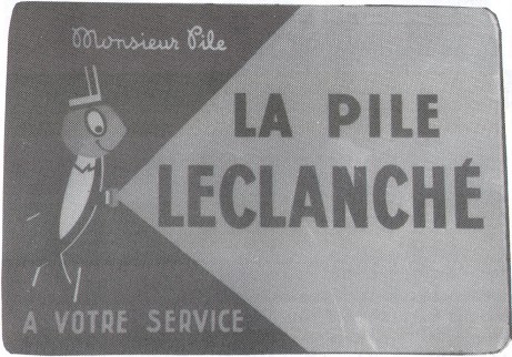 The translation is "The Leclanché Battery. Mister Battery At Your