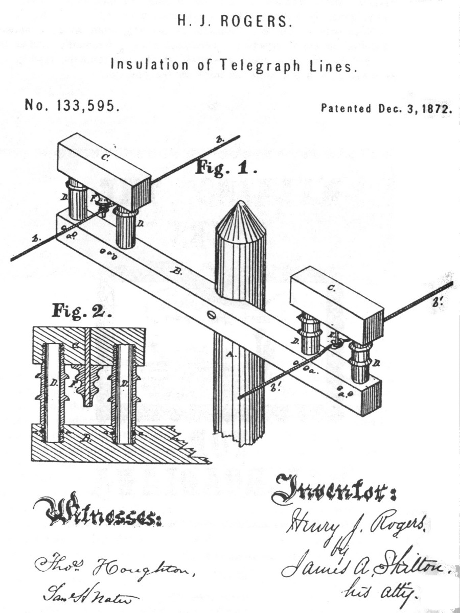 and a system of insulation for telegraph lines patented on Dec. 3, 1872. He was