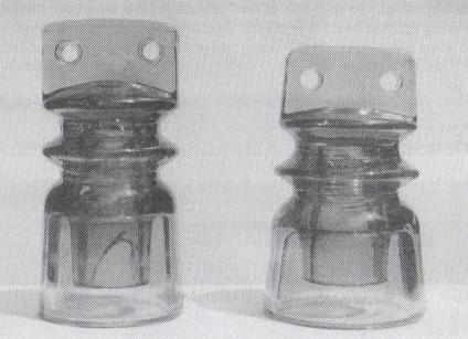 friend Ron Bernard had found three unusual glass unipart insulators at an old