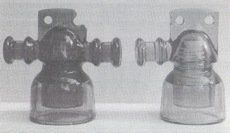be mounted on a threaded metal pin. Jim tells me these insulators were used on