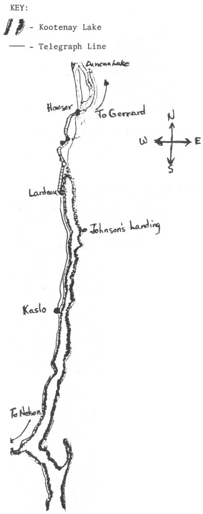 the northern end of Kootenay Lake. It was decided to install a telegraph line