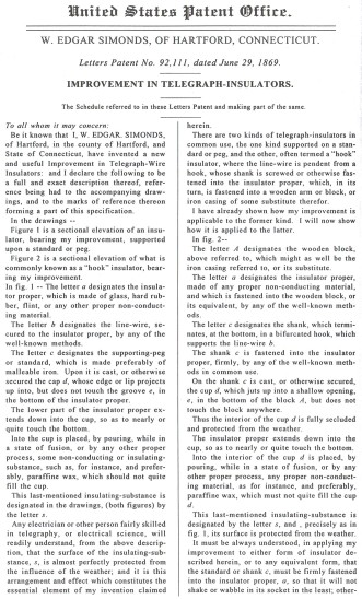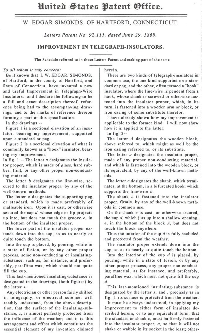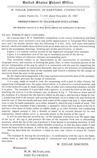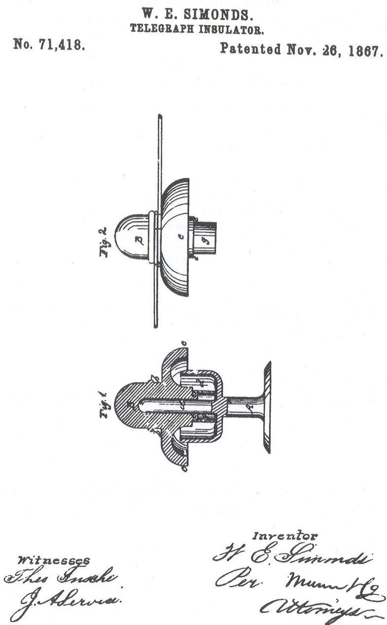the 1867 tag. This tag made reference to “telegraph insulators” (plural) by