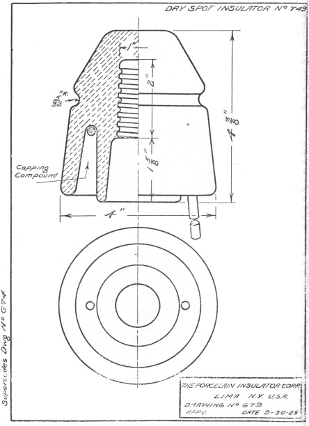 The dry-spot insulators were made with a tie-wire groove. One of the normal