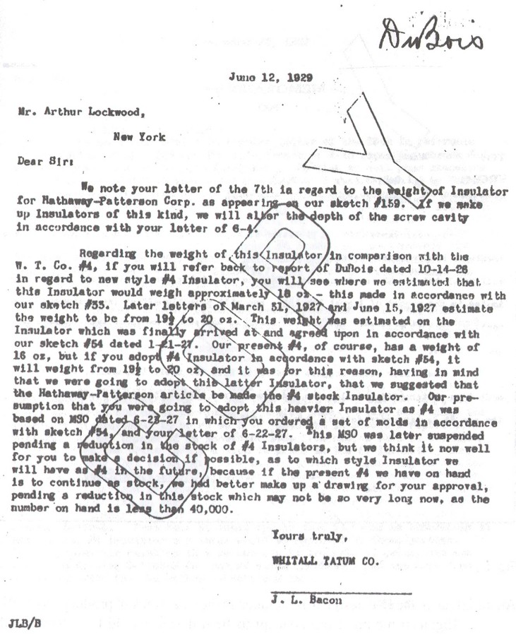 Tatum's new stock number 4 insulator. A retreat from this position occurred