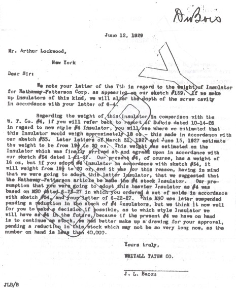 some respects to both Whitall Tatum number 4 and 5 insulators. Viewed as a