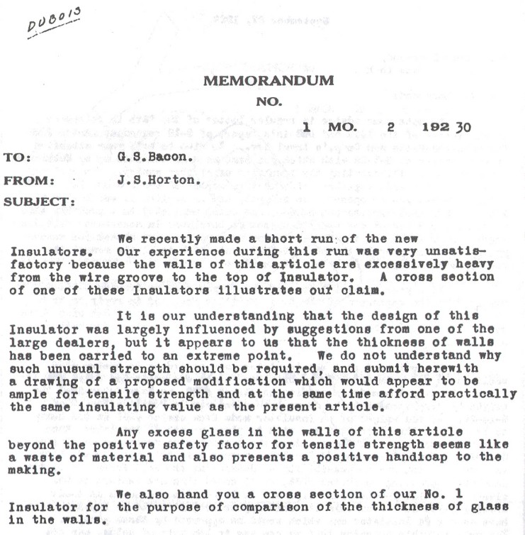 20, the engineers at the Millville plant felt that the proposed insulator more