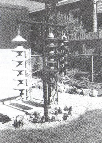 retired clothes line pole, her insulator garden is the conversation piece of the