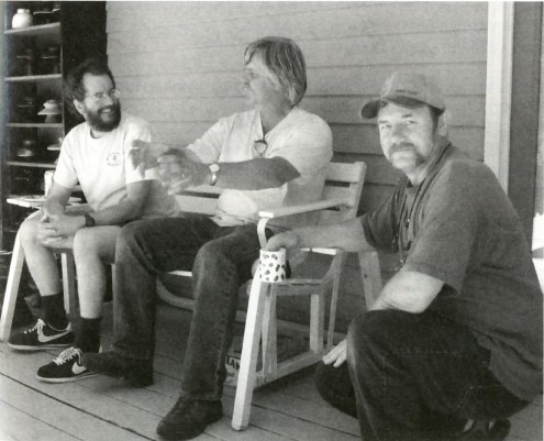 Carl Scott's tells his tall round tale to Robin Harrison and Gary Michener