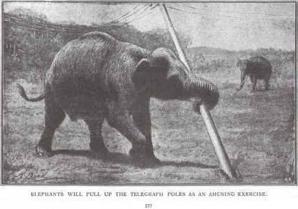 great delight in pulling out telegraph-posts with their trunks by hundreds