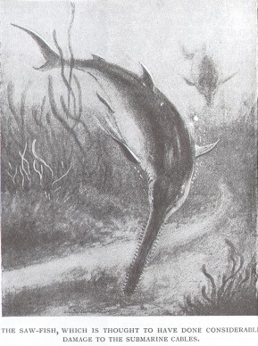 of a sawfish. The iron wires covering the cable had apparently been cracked by