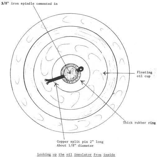 "The floating (oil) cup is secured by a thick rubber elastic ring slipped
