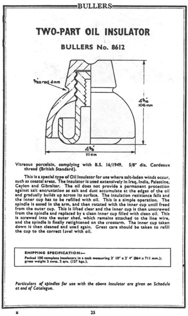 Another Johnson and Phillips oil insulator offered in this early Buller