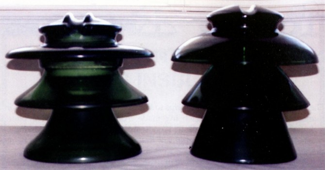 A two-piece, cemented power insulator in an interesting mushroom shape. Nine