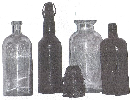 a few old beer bottles, wax sealer fruit jars and medicines. These items are a