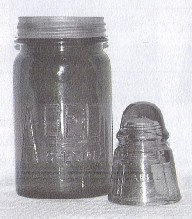 Soda bottles and fruit jars and a cobalt blob-filled CD 155 insulator