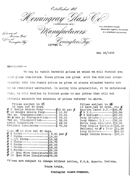 available Hemingray insulators at that time. The only puzzle -- to me -- is what