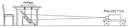The beam from the projector traveled horizontally to a large mirror which
