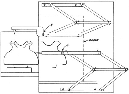 linkages each cause a pencil point (P) to trace on a sheet of drawing paper the
