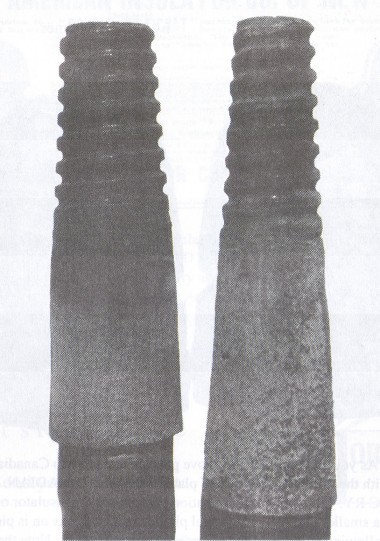 regular pin for comparison. Note the difference in diameter as well as taper.