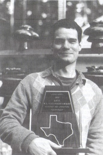 He is pictured proudly holding the N .R. Woodward Award for Research and