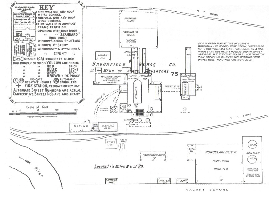 and there it was. A map from 1922 depicting the Brookfield Glass Company. The