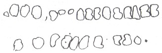 1) The first mold has a tall ampersand and wide period spacing, and no