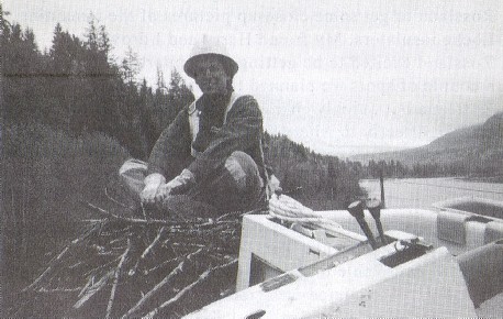Hugh Barbour sitting in an osprey nest about 55 feet from the ground.