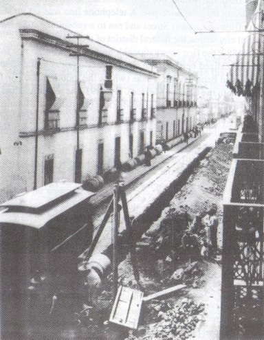 Laying of ducts for underground cables in the center of Mexico City in 1908.