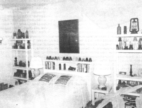 (1945-1975). The bathroom has 5 shelves of patent medicine bottles. Also around