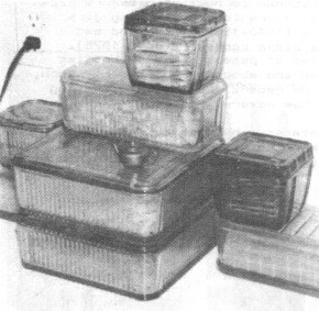 refrigerator dishes (1935-1945) as canisters, canning jars (1910-1930), milk