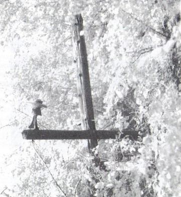 poles by hand over difficult terrain. The line was completed and power first