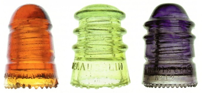 swirls; and a CD 205 Hemingray with green swirls. Insulators shown in this article are from